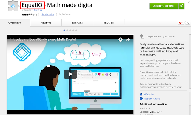 It is an extension from the Chrome Web Store that takes math formulas or expressions and writes them out. No more getting frustrated when you cannot find the pie sign or write the quadratic formula out. The extension will write out the expression or formula based on what you select, write in, or speak.