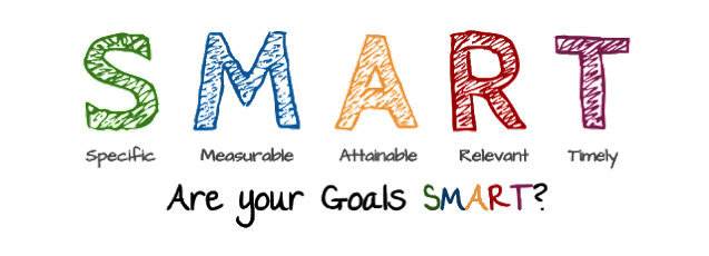 To help create your goals, let's first make them SMART goals: meaning, let's make them Specific, Measurable, Attainable, Relevant, and Timely.  Let's break down each keyword: